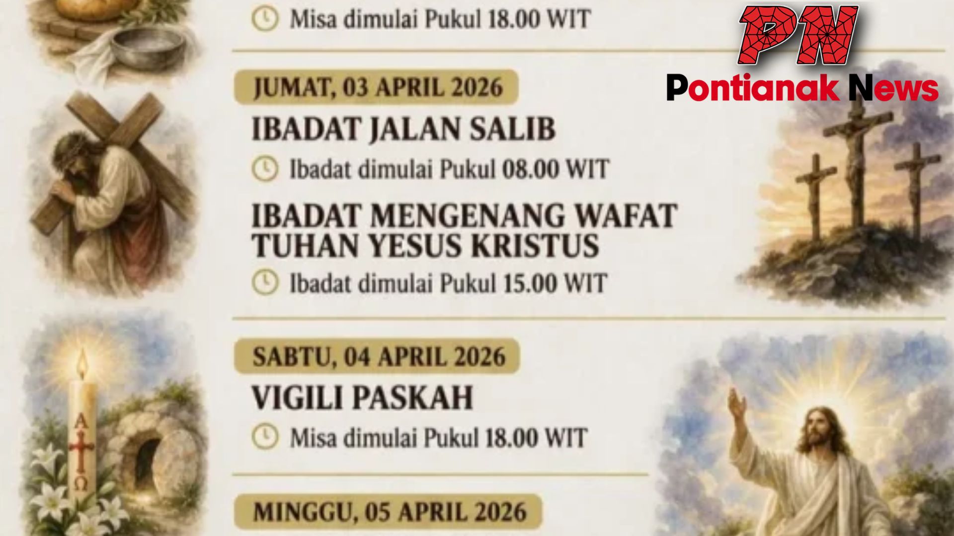 Di berbagai daerah seperti Pontianak, Sintang, hingga wilayah lain di Kalimantan Barat, gereja-gereja telah mempersiapkan rangkaian ibadah Pekan Suci dengan matang. Antusiasme umat yang tinggi setiap tahunnya menjadikan perayaan ini selalu dipenuhi dengan suasana khidmat dan penuh makna.